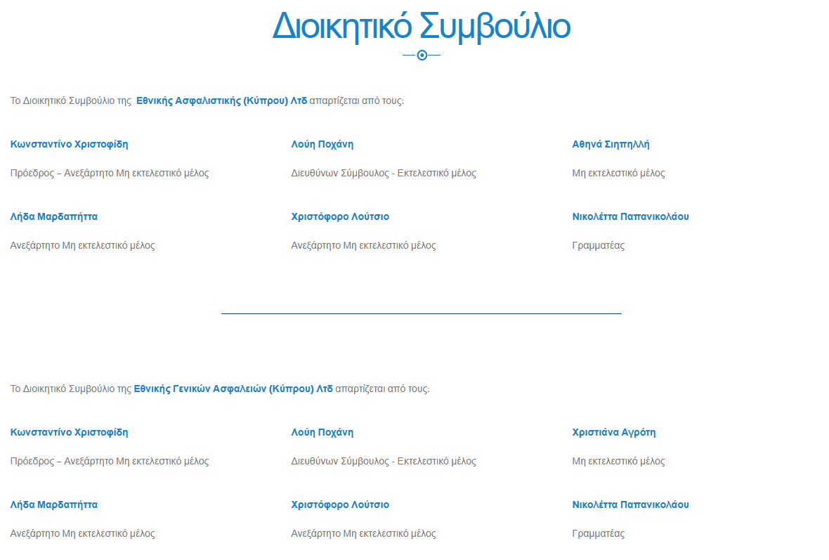 • Τα Ασφαλιστήρια που ήδη έχετε με την (πρώην) Εθνική Γενικών Ασφαλειών (Κύπρου) Λτδ έχουν μεταφερθεί και εξυπηρετούνται πλέον από τις Γενικές Ασφάλειες, εκτός των Συμβολαίων που αφορούν τον Κλάδο Υγείας, καθώς εξυπηρετούνται από την Eurolife.